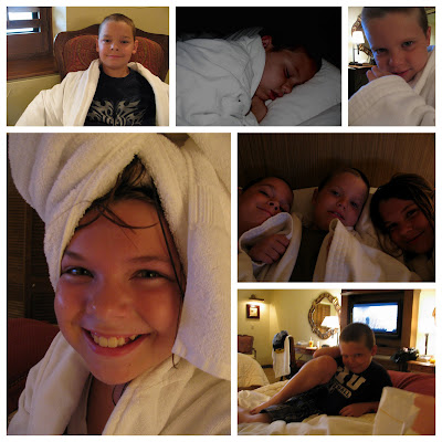 Every so often this mommy feels the need to get out of the house. More than that, she feels the need to get out of the routine that is our life. (Thanks be to Priceline for allowing this to happen.) Last night we had a little over-nighter at a beautiful resort up in Scottsdale. We hit the pool . . . HARD. The kids lounged around the room after their baths in the big fluffy robes they found hanging in the closet. They watched Cable TV. They sat by the pool late into the afternoon talking about the best way to beat a game they've been playing on-line. They chased a bunny and dug up worms. Most memorably, they bonded. They seemed, for 24 hours, to really enjoy one another's company. And that alone was worth my $35.