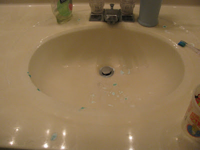 Oh please, Calgon, Brent, Mommy, anyone -- take me away! This mess did present me with the opportunity to try out my new home-made bathroom cleaner. It was fantastic! Give it a shot. If it can clean my kids' bathroom, it can clean anything.