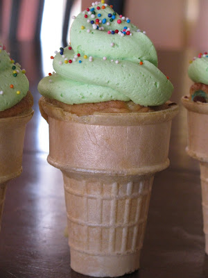 P.S. You also need to know how to eat them. : D For maximum enjoyment, you have to break the bottom of the cone off and use it to scrape off half of the frosting. That way you get a better frosting to cake ratio all the way down. Enjoy!
