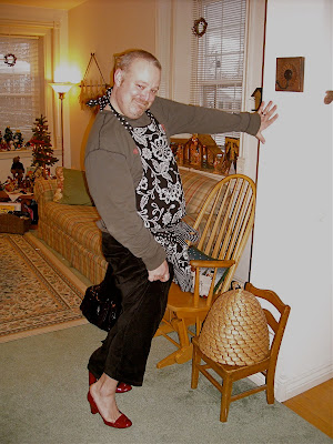 Those are my sister in law's cute pumps, but I would totally buy the ones you found if I were you! Red goes with lots of things. I especially like red shoes with a black or black & white outfit. I wear red shoes (not quite THAT fancy) with jeans all the time. I think red is kind of like a new neutral. But maybe I'm walking around looking like a dork a lot of the time. Would anyone tell me if I was?