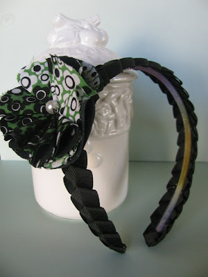 The headband is braided grosgrain ribbon and can be worn all alone or with the black and kelly green flower pin attached. (That is my very most favorite fabric in the world right now!!!) You can purchase other nice flowers in my shop to switch out and pin on your fancy headband, too. I'm just sayin'. All you have to do to win is visit my shop, Suburban Graffiti, then come back and leave a comment here. Tell me what's missing. What colors would you like to see? What is your favorite item? I'm just looking for some productive feedback here. I'll give you a second entry if you mention my shop or this giveaway on your blog. If you like the product, that is. Just leave another comment about that, too. (Yes, I'm shamelessly begging and attempting to bribe you to help me get the word out.) I will announce the winner Wednesday morning, so get your comments in before that. C'mon, you know you have a good chance of winning -- this isn't one of those ginormous famous blogs that usually give stuff away. Thanks for helping me get things rolling!