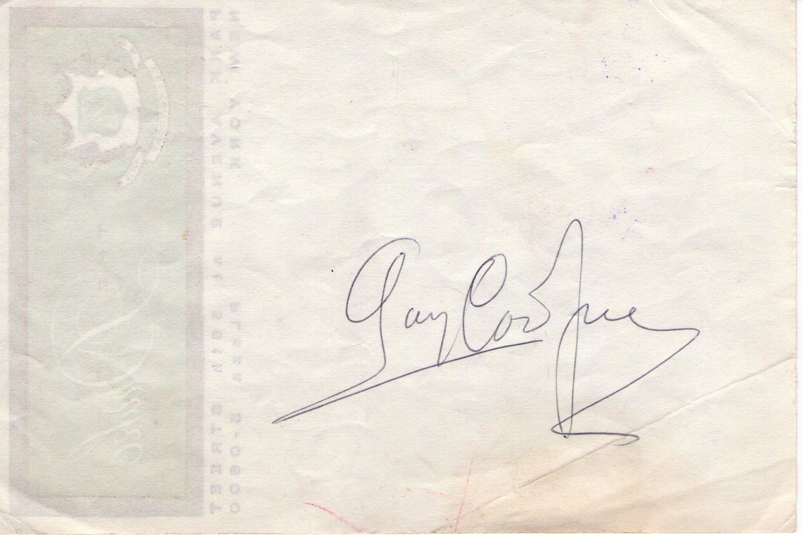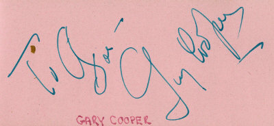 GARY COOPER'S AUTOGRAPH!!!!! Yeah, I was skeptical, too. Brent and I looked at each other for a minute saying, "It can't be. There's no way." before we ran to the computer and found this image on an autograph auction website: