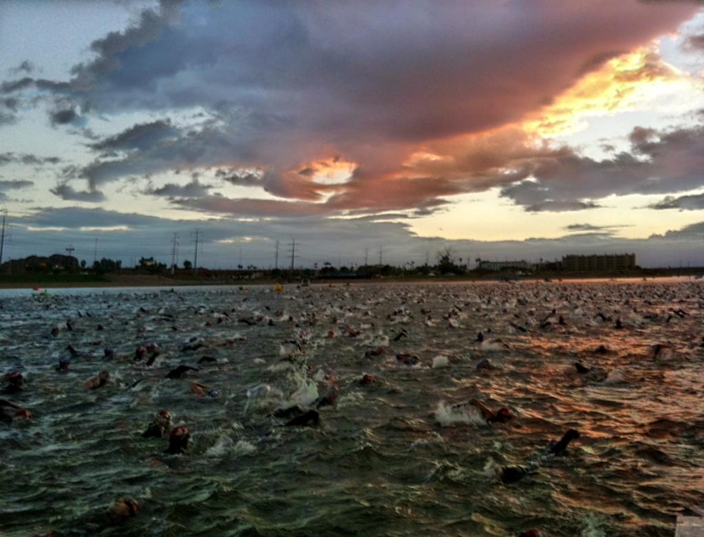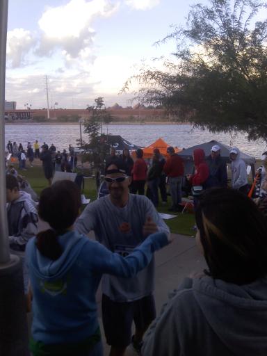 It's kind of fun to be associated with people who do really cool things. As if somehow I become a little bit cooler because of their accomplishments. Not really, but it's just fun to be around when they have their moment of glory. The feeling is almost palpable. On Sunday my brother-in-law and a friend of ours from church both completed the Ironman Triathalon here in Phoenix. My sisters and others were there for the whole 12 hours and 20 minutes. Brent and I brought all the kids along 8 and a half hours in.
