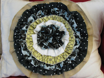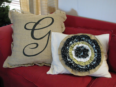 In the midst of all my Christmas preparations I squeezed in a sewing project -- just didn't squeeze in the blog post about it. Our house is bright and fun. Well, bright at least. I like a lot of color. I've been feeling the need lately to add some more feminine touches, hence the mermaid blue furniture and chandeliers. I decided my old throw pillows covered in t-shirts needed to be girl-ified, too. Enter the ruffles: