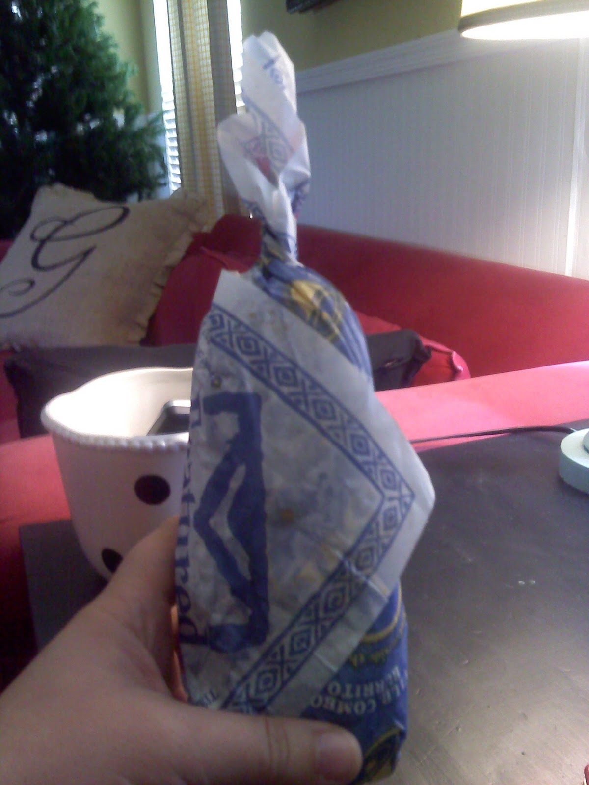 Looks like the kids at Taco Bell were getting a little creative with the wrapping today. I hated to open it up.