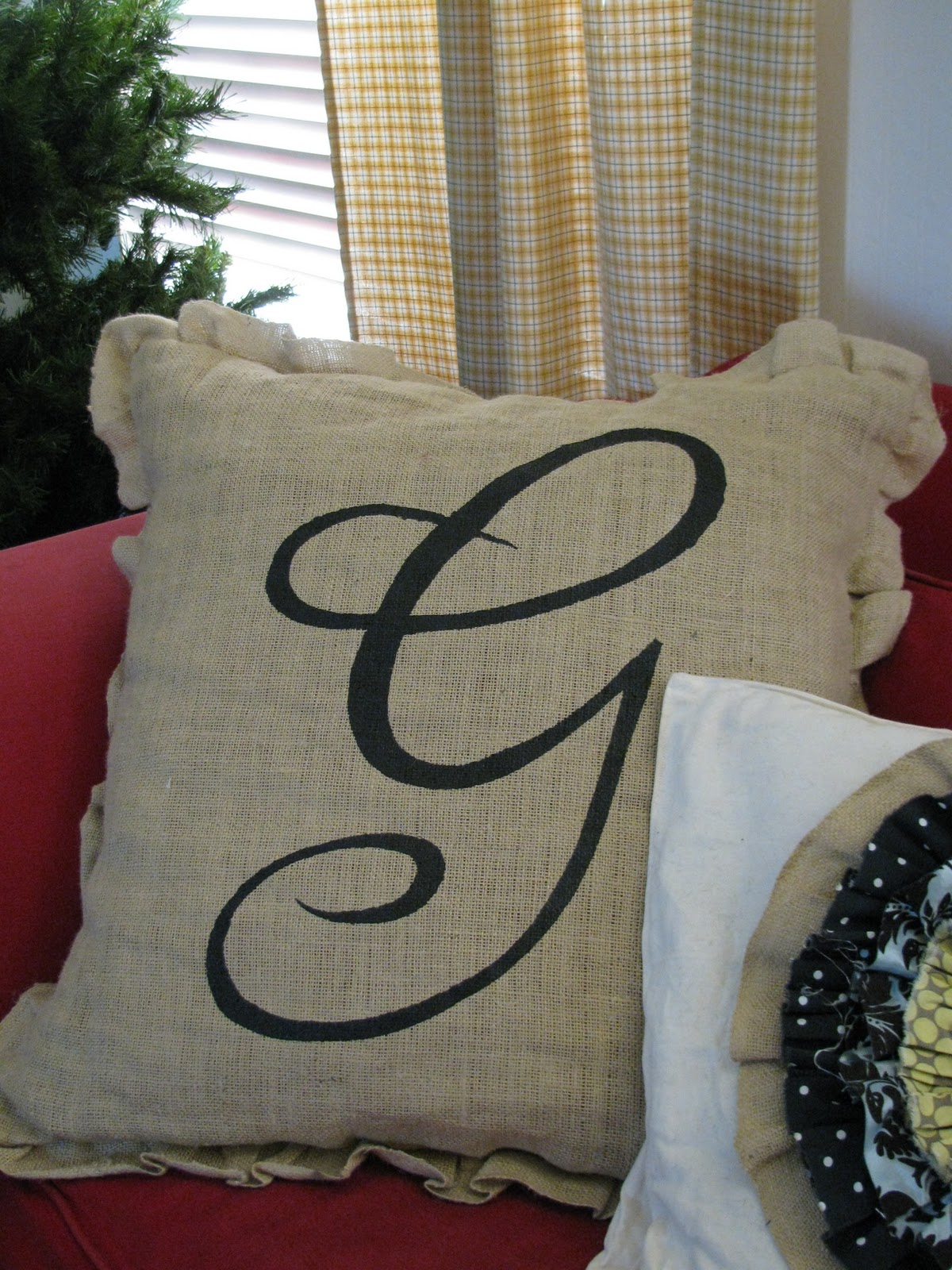 I wasn't sure how freezer paper stencils would work on burlap. Turns out it works great! For the burlap ruffles on both pillows I cut the selvage edges off of my yardage of burlap (the stuff left over from the bedroom floor) so that it wouldn't fray. Brilliant, huh? {Also, burlap is really scratchy so the dog keeps off of it. Bonus!} So, it's still bright and fun, in my opinion, and not so girly as to offend the male sensibilities in the room. That's my kind of design!