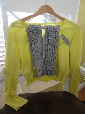 but the dragonfly is gray. And then imagine that, even though it was super cute, and your daughter was super cute they just didn't really go together. The proportions were weird -- the sweater was too long and just a little too tight in all the wrong places. So your beautiful daughter never really wore that cute sweater. And also imagine she had a pair of gray yoga pants from the second grade that she still wore and you wished she wouldn't. Got it? Mmmkay. I couldn't bear to throw that sweater away -- it was still a perfectly good sweater and my baby girl looks great in yellow. So I gave it a little makeover this weekend by adding those old yoga pants to it. {Sis was concerned, too.} It looks like it came straight out of Down East Basics and didn't cost us a penny.