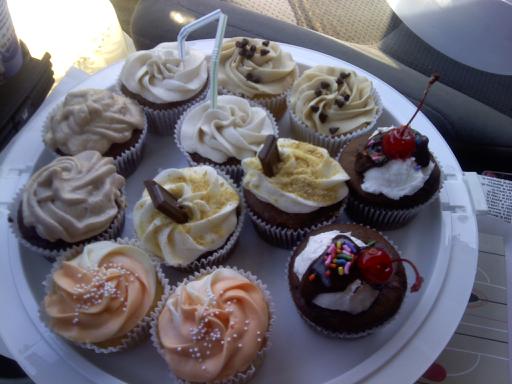 OK, that picture is from my cell phone in the car as we were making deliveries, but they really were cuter in real life. We offered 6 flavors: Rootbeer Float, Chocolate Chip Cookie Dough, Banana Split, Smores. Orange Cream, and Chocolate Almond Mousse. I tasted them all in the name of quality control, and I can tell you that each is as delicious as it is adorable. Those orange cream ones . . . To. Die. For. They taste just like Creamsicles. I'm really proud of my baby girl for taking the initiative to earn what she wants, especially in a day and age where children her age expect so much to be handed to them. {And I am thrilled to get to bake cupcakes again, which is kind-of my favorite hobby.} Maybe she and I will have to go into business together long-term. . . .