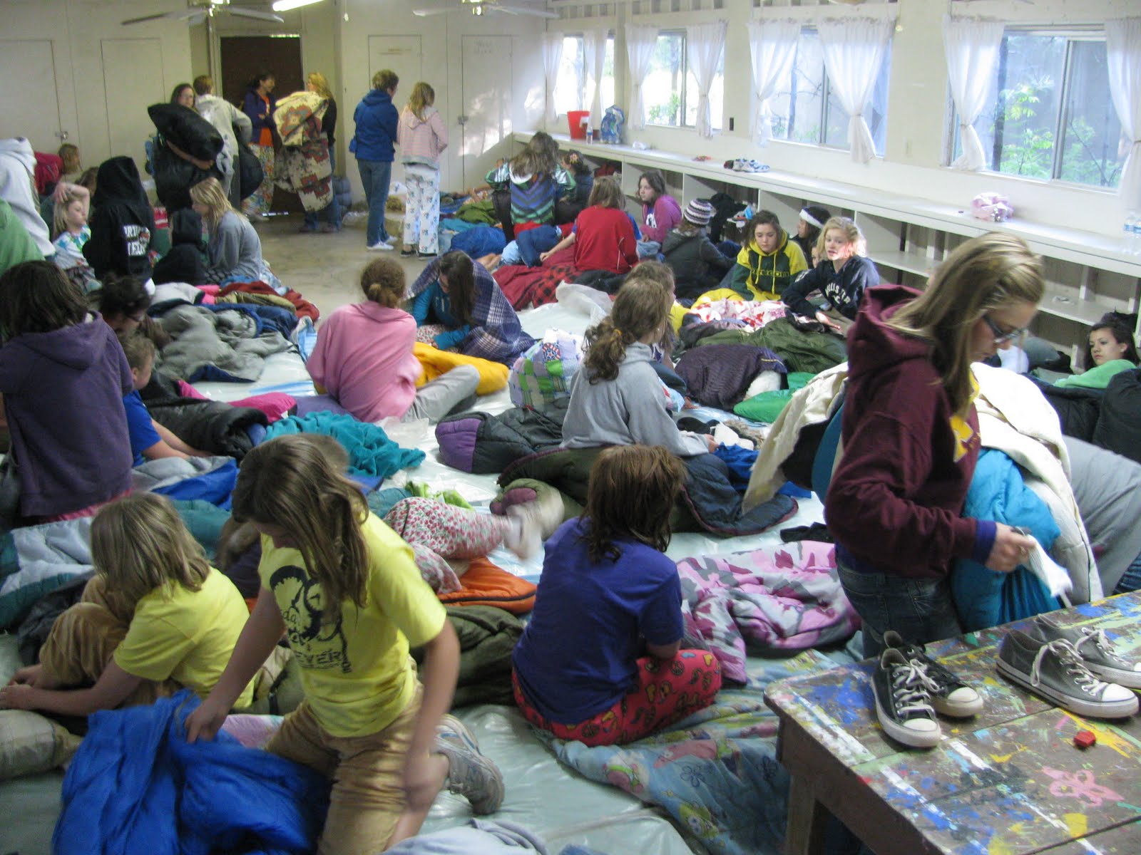 As several of us at home fell victim to the flu bug going around throughout the week, we wondered {and I worried} that he would get sick, too. We checked the mail every single day, hoping to get a letter, realizing that no news was probably good news. He was having too much fun to write, right? No phone calls meant he wasn't sick or injured -- surely the doctors would call if he were. Saturday afternoon just couldn't come soon enough. I was a little bit giddy about seeing him again as we waited for the bus to arrive. I met another mom who was as giddy as I was waiting in line for our cabins to be called so we could go get our kids. Her son and Riley have the exact same birthday. Odd.