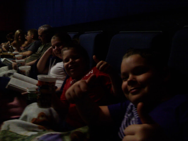 For Ri's 11th birthday this week he wanted to see the midnight premier of the new Harry Potter movie last night. Here we are waiting outside the theater at 7:30 p.m.