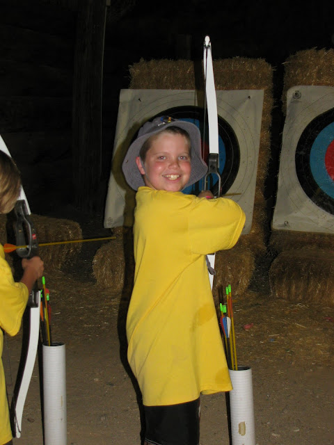 The boys did great, heat and all. D's favorites were archery and BB guns.