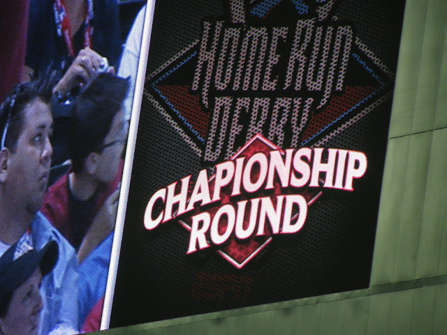 Brent went to the Home Run Derby with a friend who had extra tickets on Monday. It was a once-in-a-lifetime opportunity to have the All-Star game in our home town AND actually get to go. Do you love that the Jumbo-tron doesn't have spell check?!