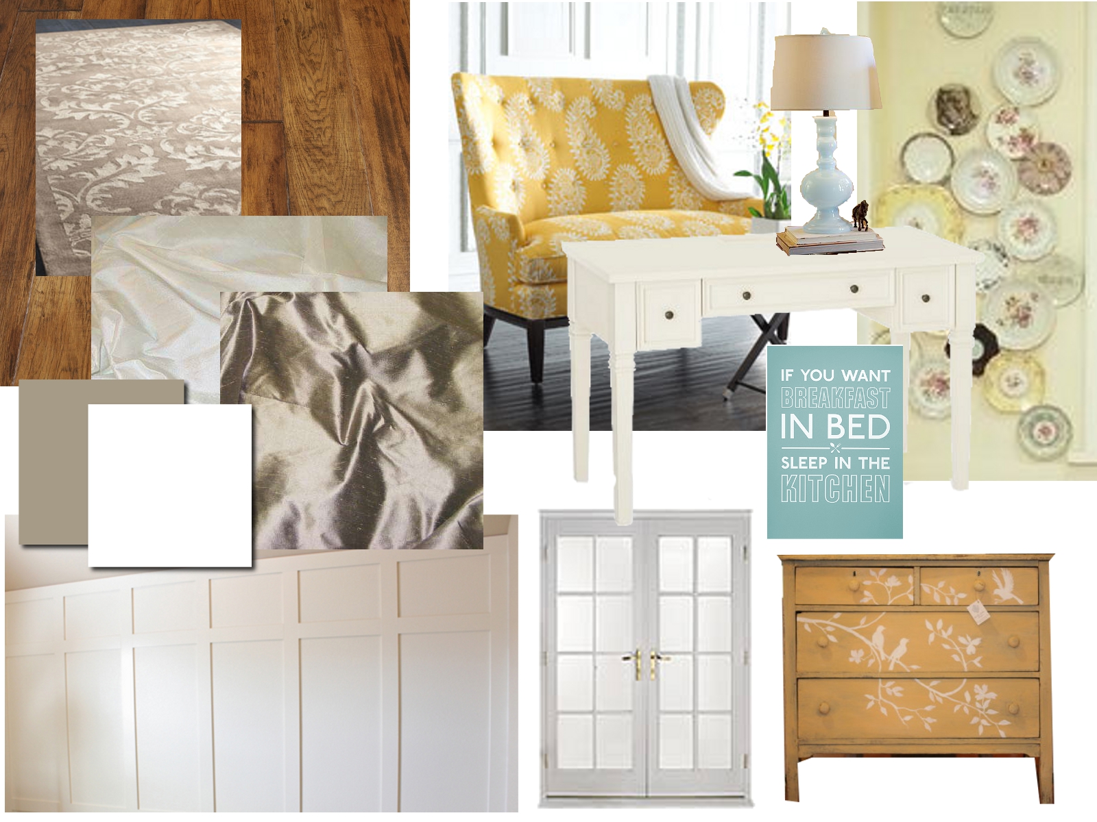 ere I sit, back still aching, bored {OK, and stressed} to tears, practicing my favorite real-life-issues avoidance technique of giving my home a makeover for pretendsies. Did you really think I would stop with the outside?! I am, after all, an interior designer. Or I was in another time and place far removed from this one.Whenever people tell me they think my house is cute, I squirm a little bit, partly because I'm bad at accepting compliments, but also because in my mind I can see how great things could look given an unlimited budget. And, let me tell ya, it's current state just doesn't measure up. I really try to be grateful for every single thing I have. I really do because I know it's a lot. I have everything I need. My life is not without luxuries, it is true. But sometimes as I look at the threadbare upholstery on my couches and the filthy carpet up the stairs I can't help but be overcome by the demons of my wants. The really good thing is that I'm totally OK with the idea of "someday". Someday my dog won't chew up the living room rug. Someday my kids will not use the arm of the couch as a napkin. Someday my house will look something like this:Or maybe it never will. Just seeing it on the screen of my computer is almost as satisfying as having the real thing. Because, let's be honest, that mirrored dresser in the first grouping would be a nightmare to keep clean. Isn't it pretty though? *sigh*