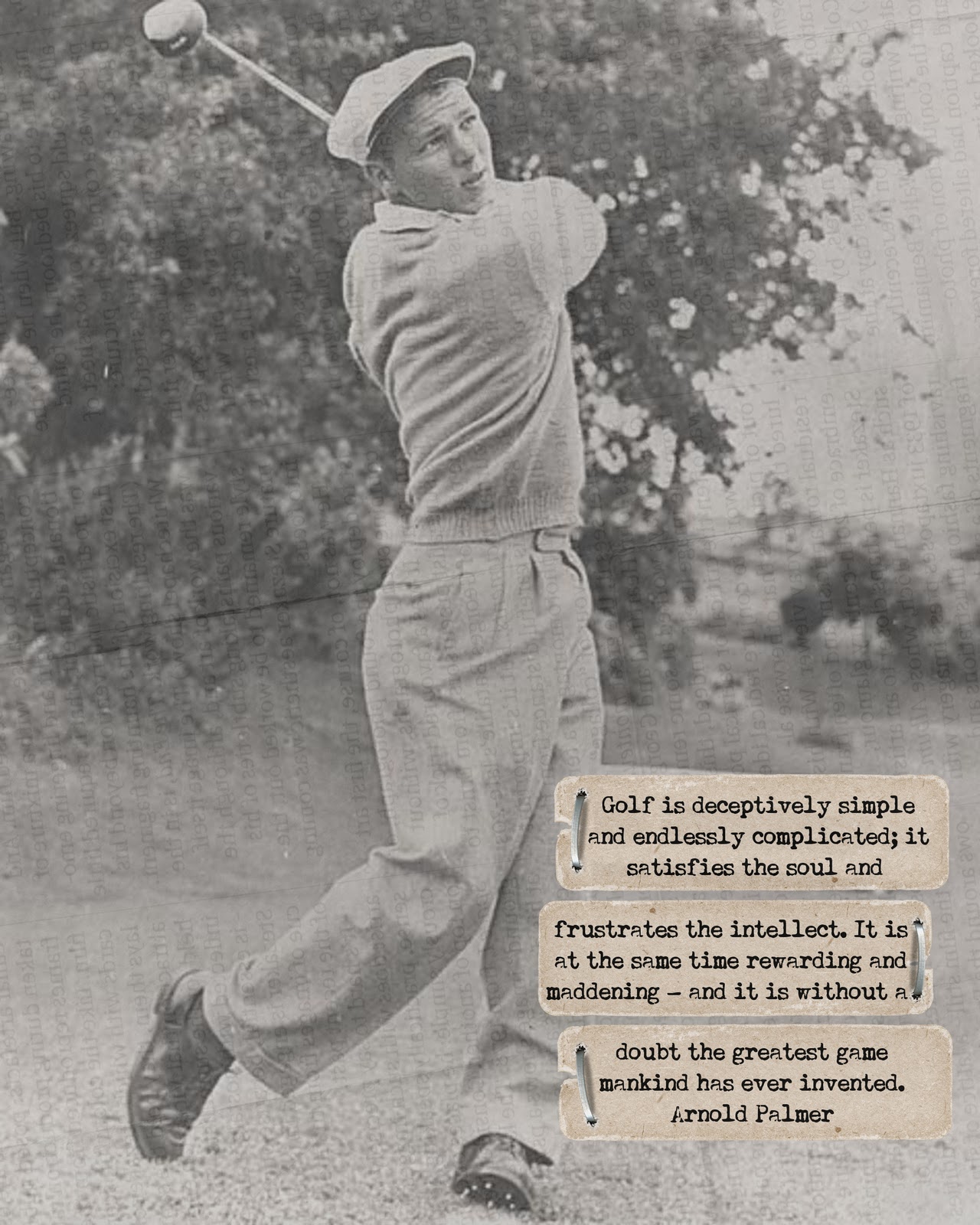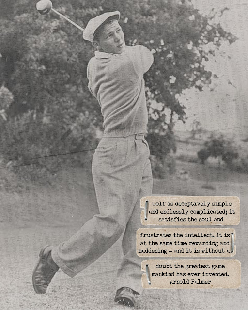 Back in the spring I remember seeing a series of framed vintage-style prints of famous golfers at Target. Each had a great quote from the featured golfer. They were really cool. They were also overpriced. And no longer available. But it seemed like a fun idea to try and recreate for someone who may or may not have a collection of golf memorabilia.