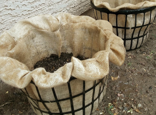 From here you just take it outside, fill it with soil and plant away! It took a little extra time {like maybe half an hour to sew both liners}, but I think it's worth it in the long run since they're right next to my front door. If I had a bigger yard and these weren't going to be so "on display" I might not have bothered.