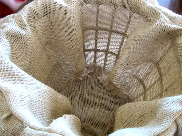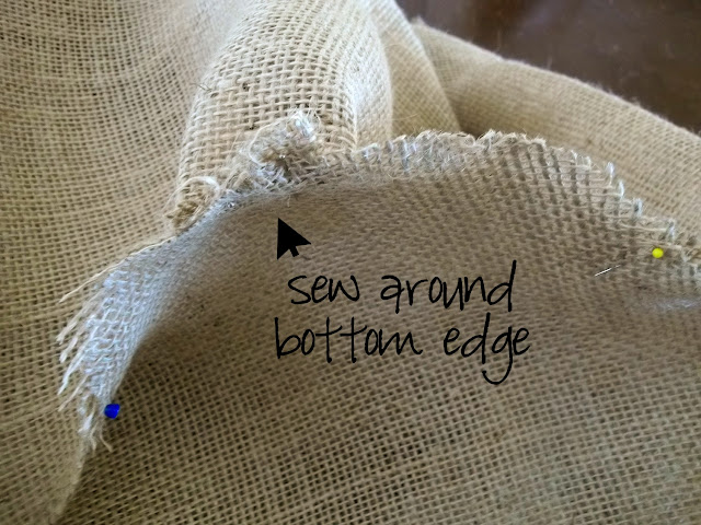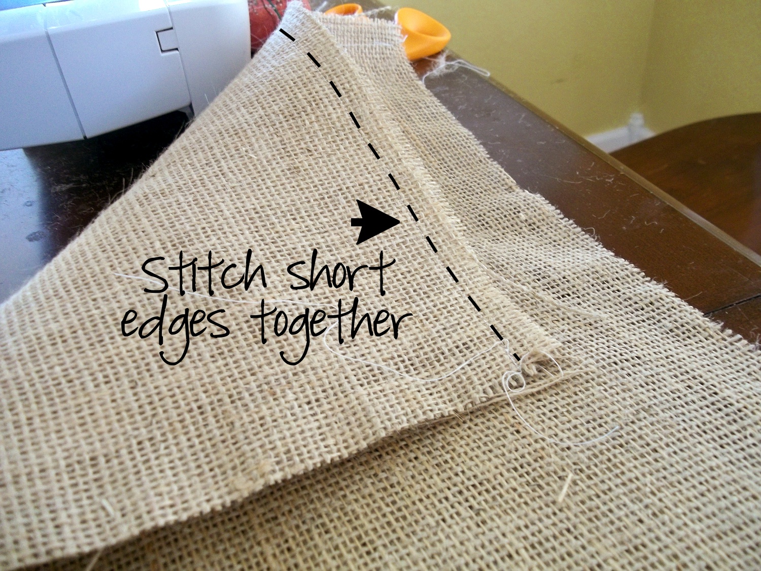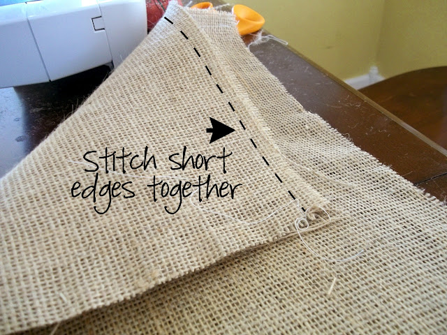 2. Fold your ruffle piece in half length-wise WRONG SIDES TOGETHER {the hot-dog way, if you speak 2nd grade} so the long raw edges are together. NOTE: Burlap doesn't really have a right or wrong side, but once you stitch the ends together the RIGHT SIDE becomes the side where the raw edges of your seam DON"T show and the WRONG SIDE is where they DO. Make sense?