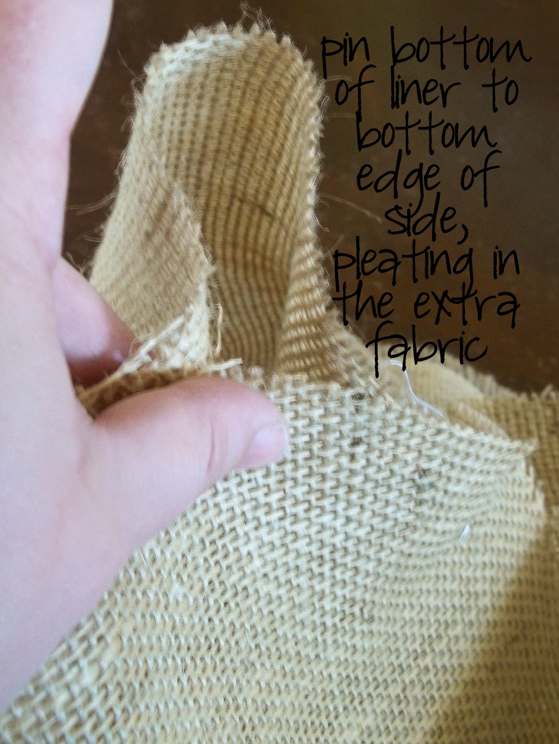 - 1 piece of fabric for the liner sides 49 inches long by 13 inches wide {the top dimension + 1 inch by the depth + 1 inch}
