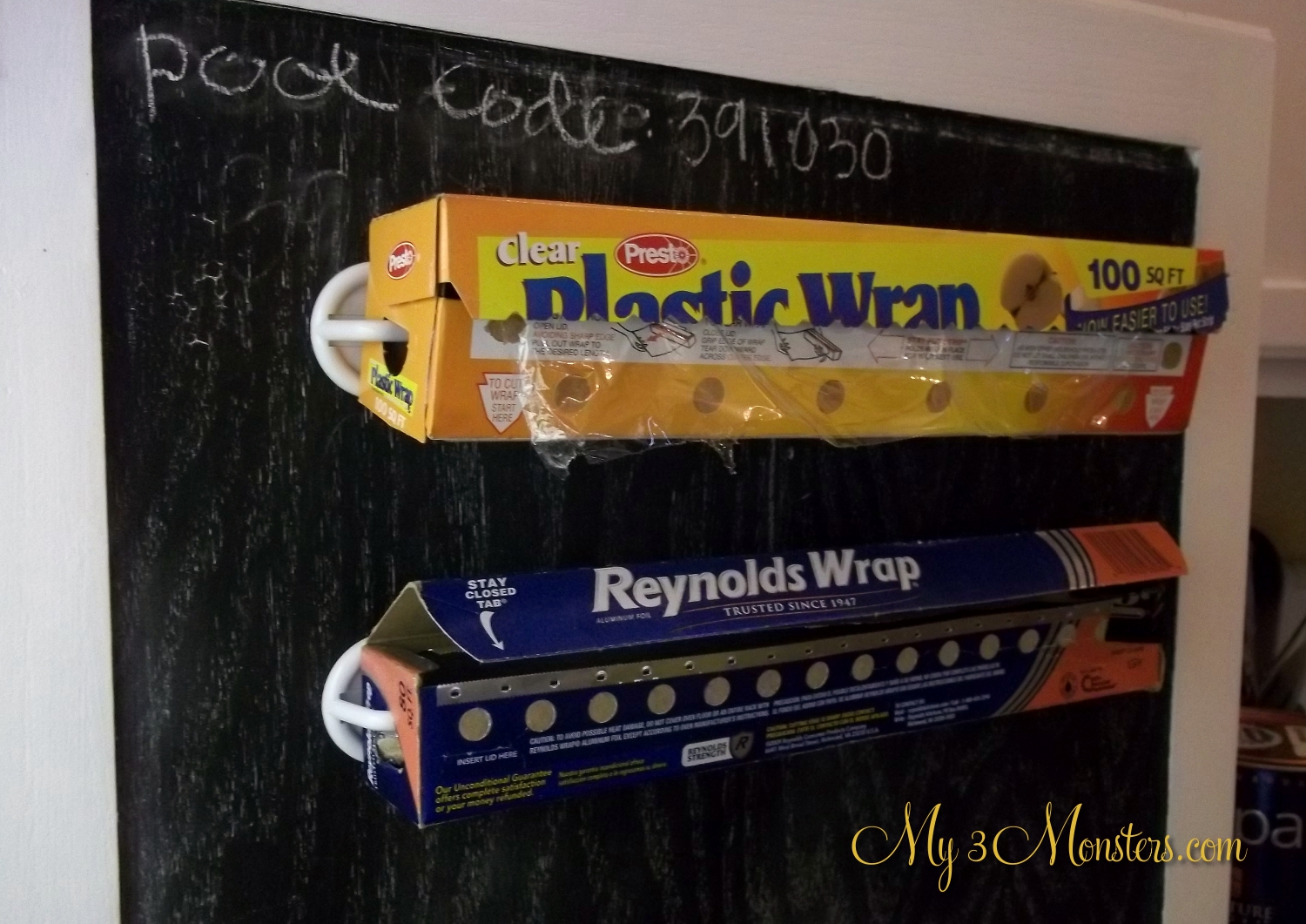 How brilliant is that for storing your rolls of foil and plastic wrap?! Just little cheap-o hooks from WalMart turned sideways! And now I don't have to dig to the back of the pantry to get that stuff out when I need it. Love that! So, there you have it. The rest of it is just a plain ol' pantry, but these fun touches cute it right up and make me excited about cooking again. By the way, feel free to come over and use our community pool since you now have the code. {LOL} Just clean up after yourselves so we don't ruffle any feathers with the HOA. Mmmkay? Have a great weekend!