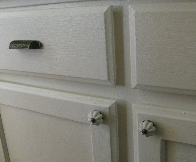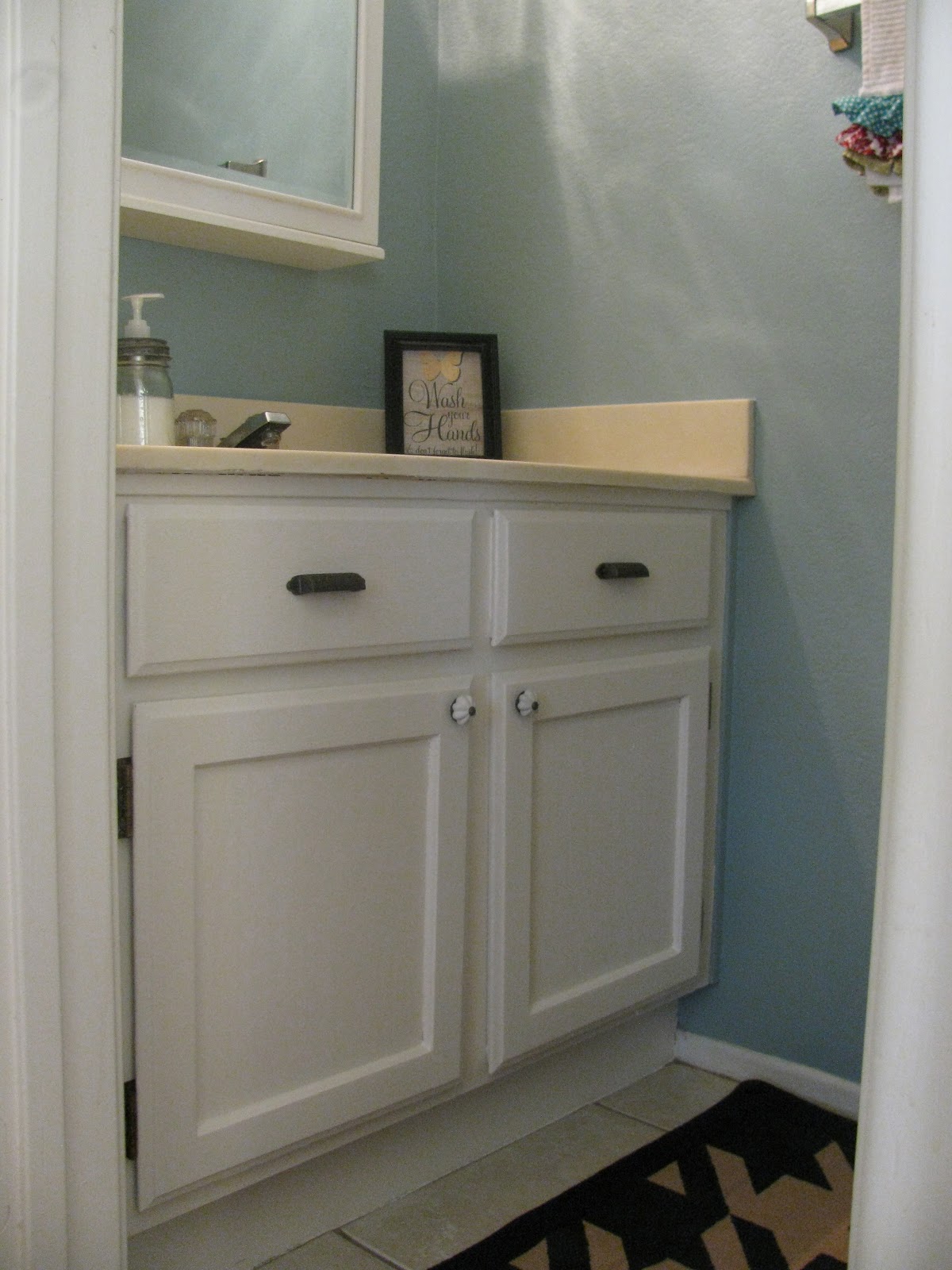 While we were freshening things up, I found these knobs for the vanity at Hobby Lobby for just a couple dollars. Up 'til now there were no knobs in there, which was fine for functionality, but the knobs just class it up a bit.