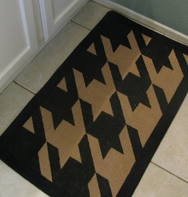 I painted a houndstooth pattern on the woven jute mat in there using black paint left over from my recent dresser makeover. I like how it adds some more color and pattern to the room. In a room like this with mostly hard solid-colored surfaces, it's nice to add a little pattern where you can.