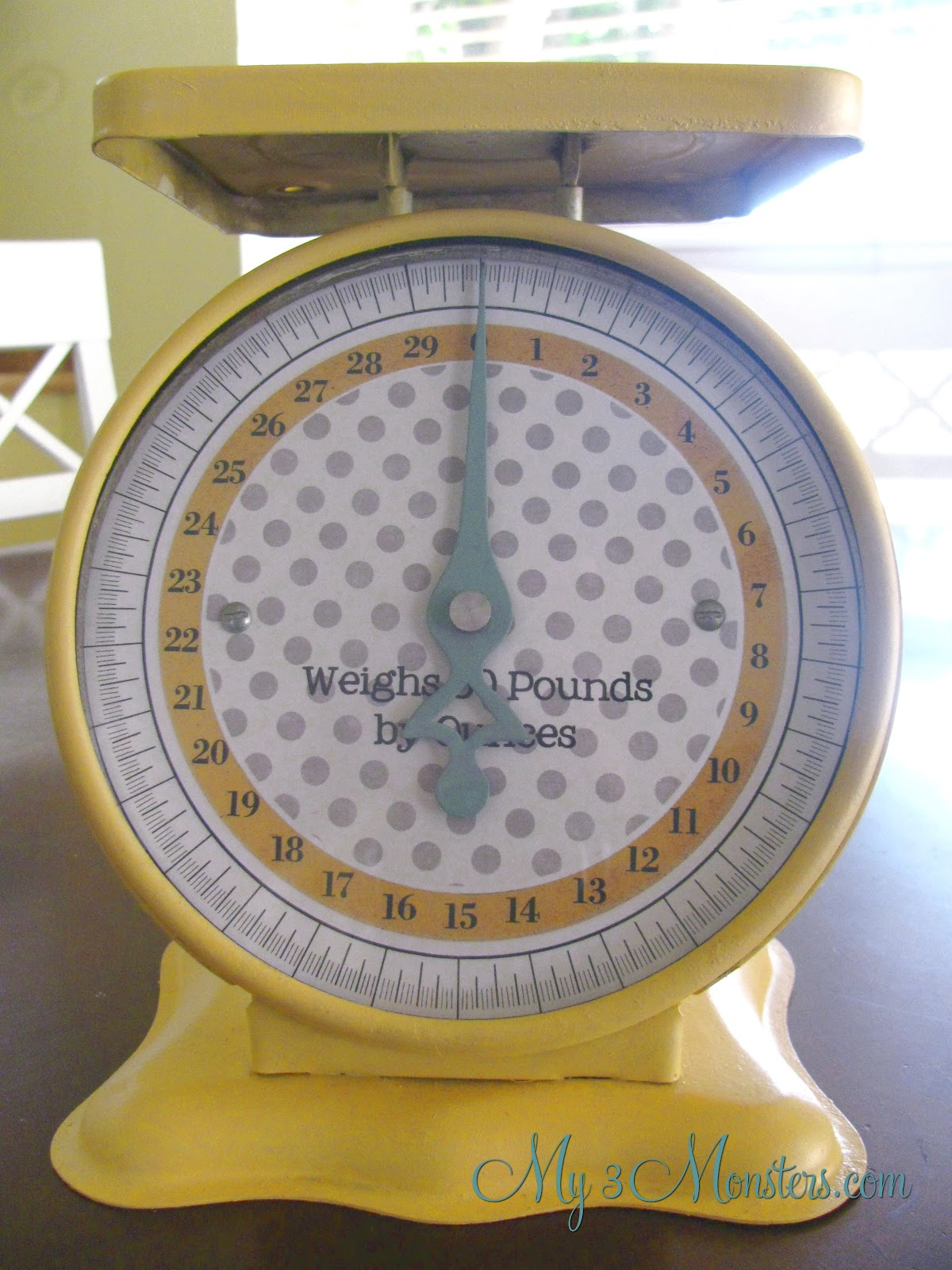 A fresh coat of Valspar Golden Maize spray paint freshened the whole thing up. I reassembled it all and voila! New, beautiful vintage scale for me!!