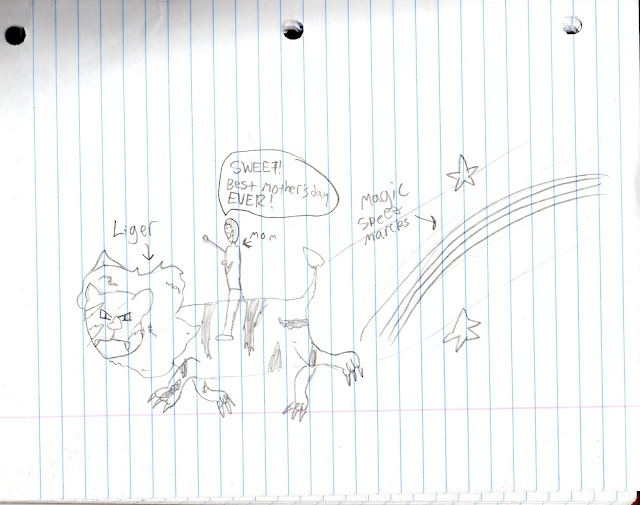 A gift from my eldest son, passed down the pew to me in the middle of sacrament meeting yesterday. Yep. I'm the luckiest mom ever. Did any of you get a magical liger ride for mother's day? I didn't think so.