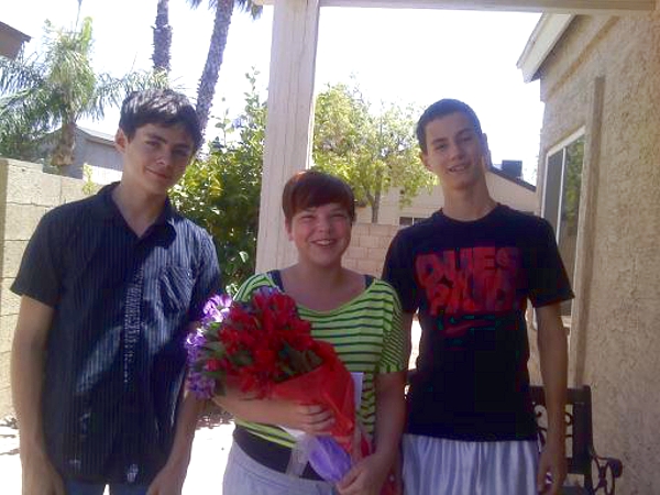 Most excited girl ever!! Shortly after returning home from camp she celebrated her 14th birthday, which just happened to be her golden birthday {she turned 14 on the 14th}. As tradition dictates, she got 14 gifts from her family, all wrapped in pretty gold paper. That was super fun, but all of our gifts paled in comparison to having two of her best friends stop by with gifts . . . and flowers.