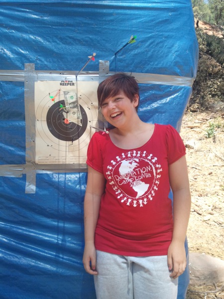First we went to Girls Camp. Among her many adventures there, she won $1 at archery for hitting the bill that was taped to the target.