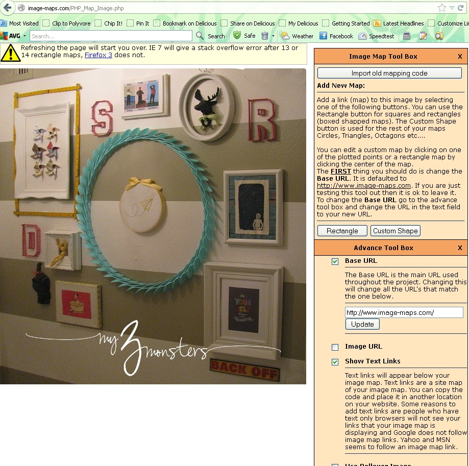 The first thing you need to do is upload your image to a hosting site. I use Photobucket, but you could use whichever site you like. The important thing is that you have a unique URL for your image. When you go to the image-maps.com home page, enter that URL in the box that says "From a URL" then click Start Mapping Your Image.