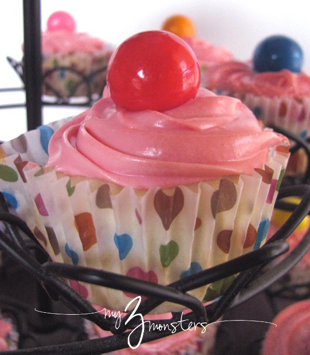 I thought the cupcakes tasted really good, but the bubblegum flavor was pretty strong. NO complaints from anyone though. I will be making these again sometime FOR SURE. Maybe Sis can make them again for my birthday next month . . . I just can't help thinking how perfect these would be for a little girl's Pinkalicious birthday party or something. Where was Duncan Hines ten years ago when I was doing little girl birthday parties?!