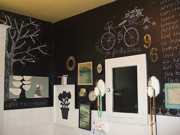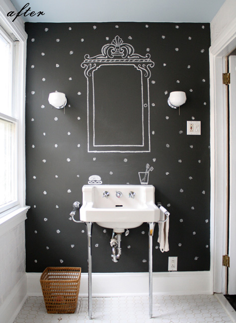 I followed that last example pretty closely because I liked it so much. I just took a piece of chalk and free-handed it. That's the nice thing about chalk art -- you can just keep erasing it until it looks exactly how you want. I would recommend using a level when you start sketching it out so that your design doesn't get all wonky -- unless you want it to look wonky, which would be a fun look, too.