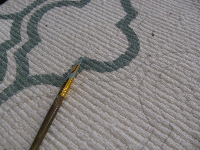 I think it makes my little $40 rug look like a million bucks! What's really cool is that the paint doesn't show from the back so if I get tired of this pattern, I can just flip it over and try something new. Not soon, though. My back and knees are still killing me.