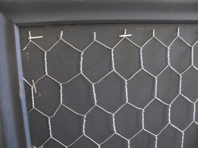 Normally people use empty frames so they can staple the chicken wire to the back of the frame and hide the staples. Since I couldn't remove my frame's backing I had to staple on the front, so I needed a way to hide those rough edges. That was kind of a blessing in disguise because it gave me a great opportunity to fancy up the board a little bit.