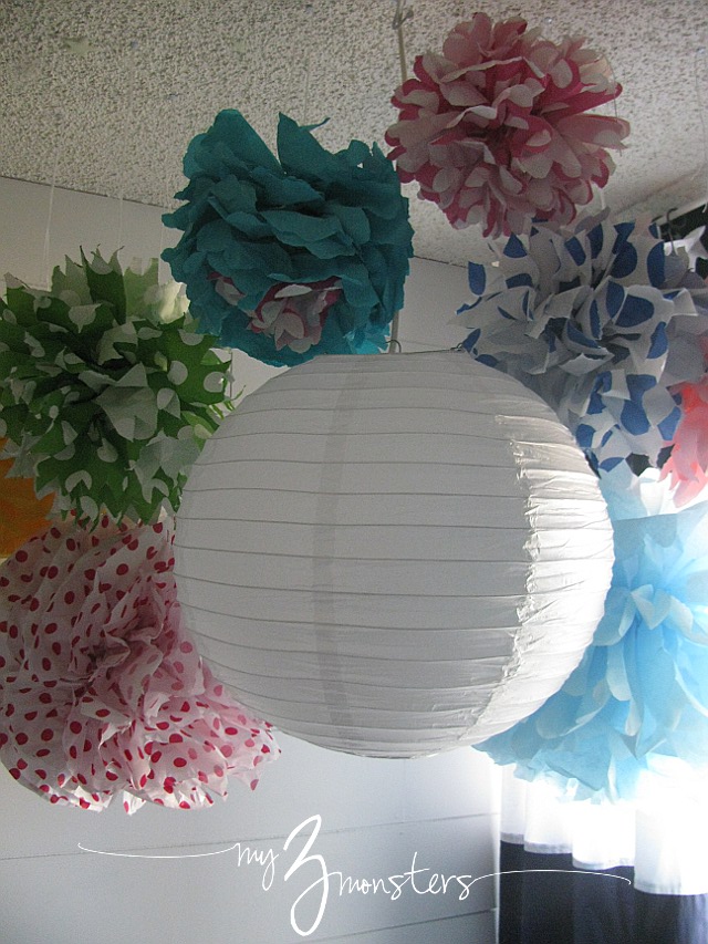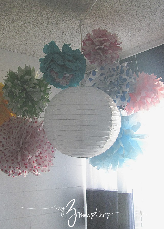 I love it in this space. It's clean and simple and fresh looking. I knew I was going to surround it with big tissue paper flowers and I didn't want it to be too busy. Come back tomorrow and I'll talk more about those tissue paper flowers.