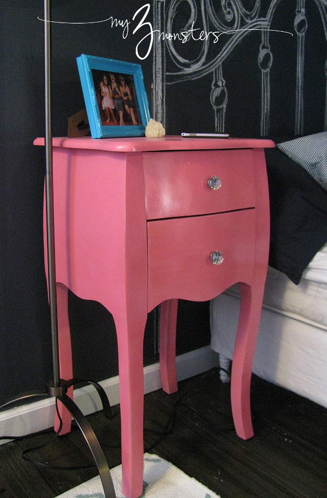 It ended up being more of a bubblegum pink than a raspberry pink, but I still love it. It's the perfect funky pop of color that we needed on this side of the room. No, that is not a rock on my daughter's side table. I mean, it IS, but it's a piece of the new Gilbert LDS temple that is being built so it's a special rock. My youngest son is the one who collects random plain rocks, not Sis. Anyway, I'm looking for a basket that will fit underneath the table to hold her library books and magazines. I'm sure there's a perfect basket out there somewhere.