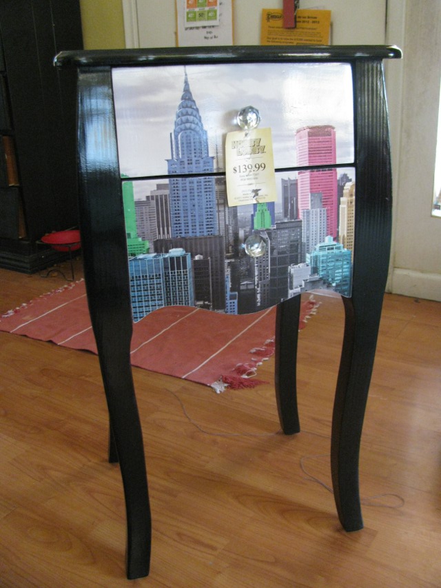 It had a great shape and pretty sparkly knobs. I didn't love the cityscape on the front, and you know I didn't pay $140 for it. Are you ready for this?! It cost me . . . . . . . . . .