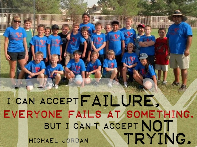 It's OK to sometimes fall short of your goal, as long as you did the best you could possibly do. I always tell my kids, "Just try!" You'll never know if you can do something until you try. Our kiddos could never have come back from a twelve point deficit without TRYING!