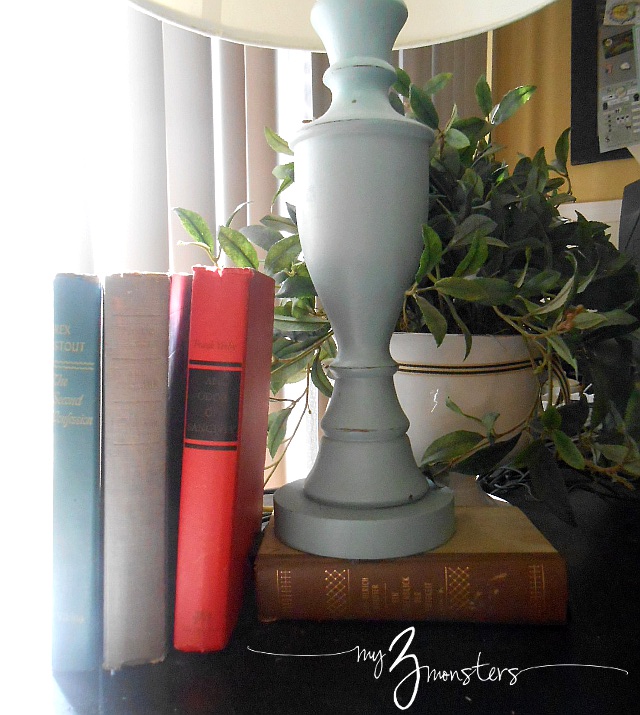 The book laying flat under the lamp hides the external hard drive. Here's to dirty little secrets! In clean houses. If you ever come over, don't snoop around too much. I have little secrets like that all over this tiny little house. And also some dust bunnies usually. Heaven only knows which you'd find first!