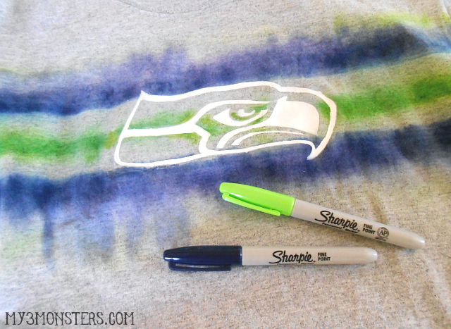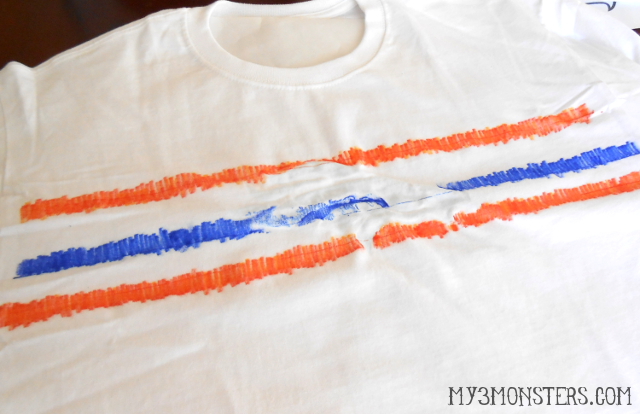 Download the patterns for my little girl silhouettes here. Use the freezer paper stencil technique {like I used on the Sharpie Tie Dye shirts earlier in the week } with black fabric paint to transfer the silhouette images to your fabric. Allow the paint to dry then carefully remove the stencils.