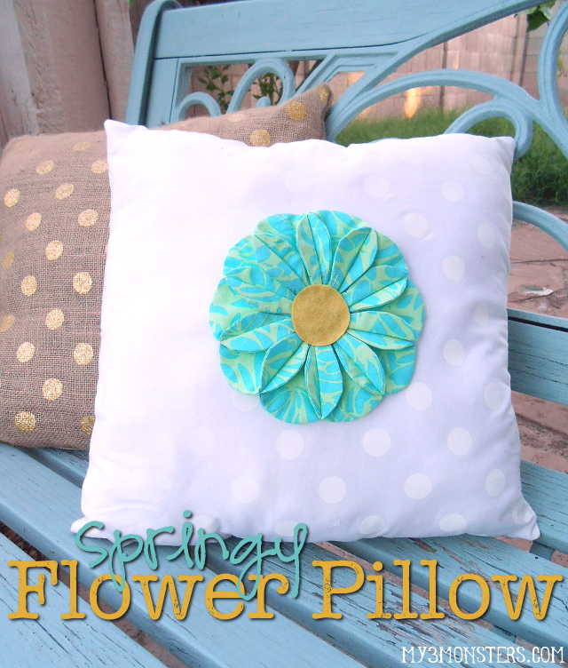 Springy Flower Pillow with Kanzashi-Inspired Folded Fabric Flower
