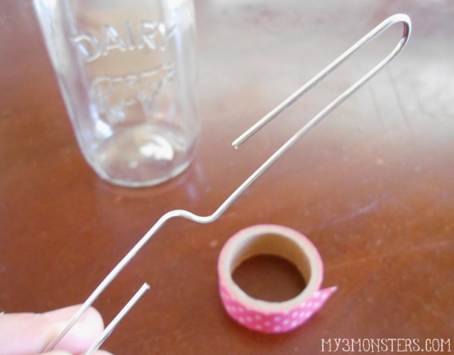 Step 2: Prepare the vases for hanging. Bend paperclips into S-shaped hooks as shown below.