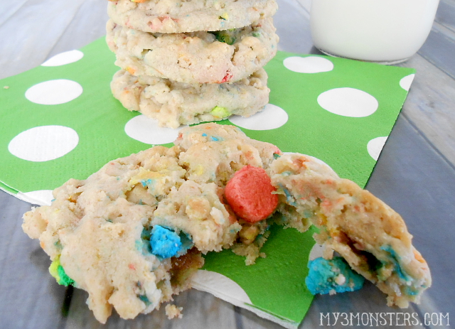 My kids loved having their favorite cereal in cookies and milk form. I loved them because they were so stinkin' cute with their bright marshmallow pieces. OK, they were pretty delicious as well. Wouldn't this be a fun breakfast surprise next Monday morning for St. Patty's Day? Or for your next school bake sale? Give them a try and let me know what you think!