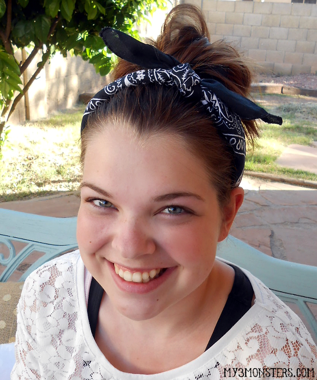 I love the way it looks with a messy top knot as Sydney is modelling it, but it would also be cute with the hair down. This may just be my go-to summer hairstyle! They're so easy and inexpensive, you could make one to match every outfit.
