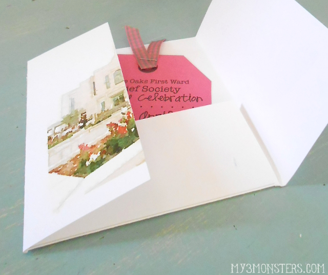 That is the watercolor printable of the Gilbert LDS Temple that I shared a few weeks ago on the front. It's just an example of a fun, creative way you could use that image. I'll be sharing a post about how to make the invitation as well as a printable template in the next few days.