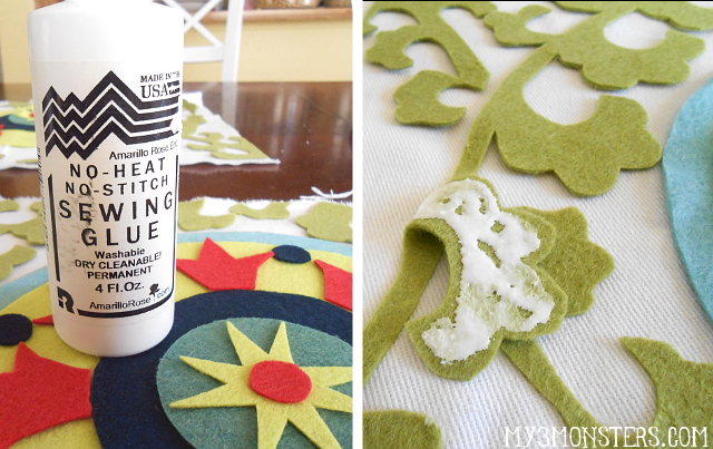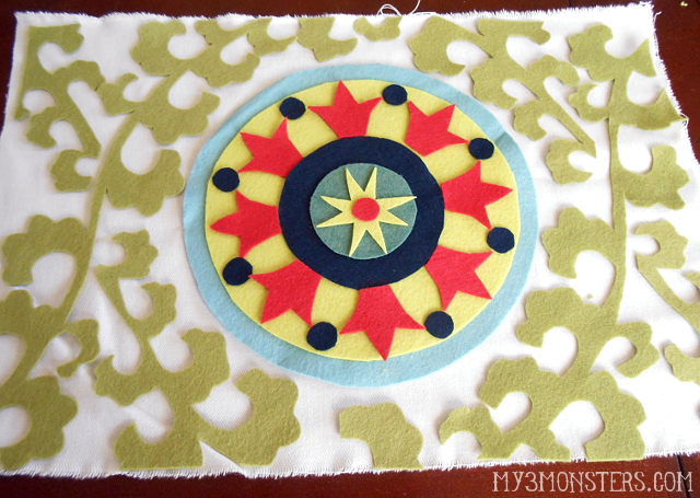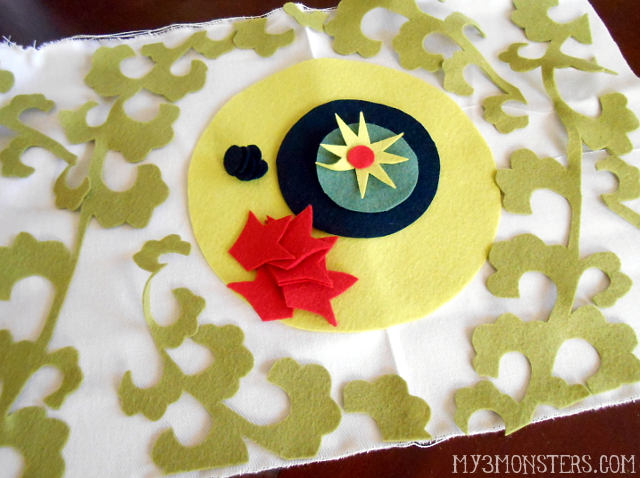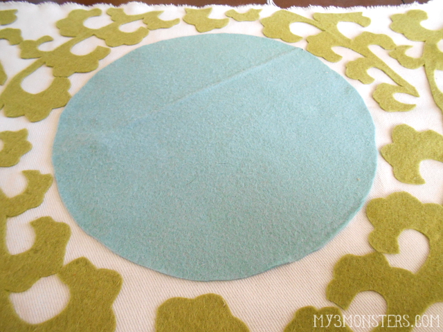 spacing. Use the straight edges of the cut felt pieces to line up with