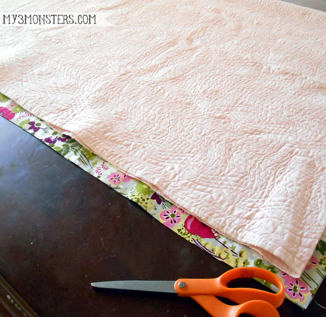 For my example, I cut the quilted fabric 54" x 54" and cut my floral fabric 56" x 56".