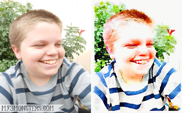 Yep, Waterlogue to the rescue again. Just like I used it to make my Gilbert Temple watercolor printables, I was able to take photographs of my children and let the Waterlogue app work it's magic on them. These are no fancy pictures either. I took my kids out in the front yard with my trusty old Nikon CoolPix point-and-shoot camera and snapped some shots quickly. {The dog would not cooperate that day . . . Cass is going to be on the blank canvas as soon as I get a good shot.}