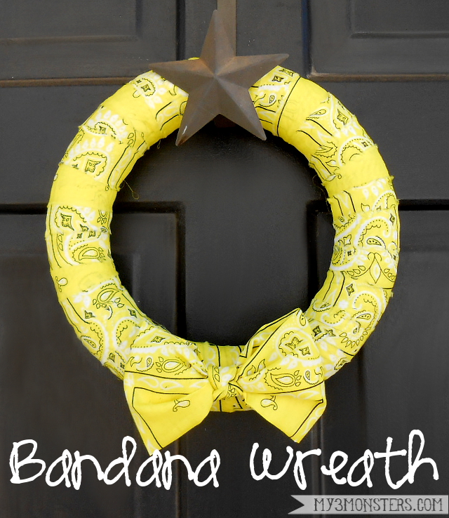 It’s finally summer!!!! Can I get a big Hooray?! The kids are out of school and the weather is warm. It feels like a pretty good time to celebrate! I am so looking forward to the next few months of lazy days with my kiddos, no schedules, swimming, and vacations. Now is the perfect time to give your front door a cheerfully casual summer makeover with a Bandana Wreath.