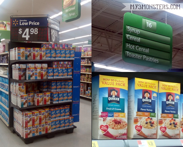 They are conveniently located on the cereal aisle at my local Walmart store.