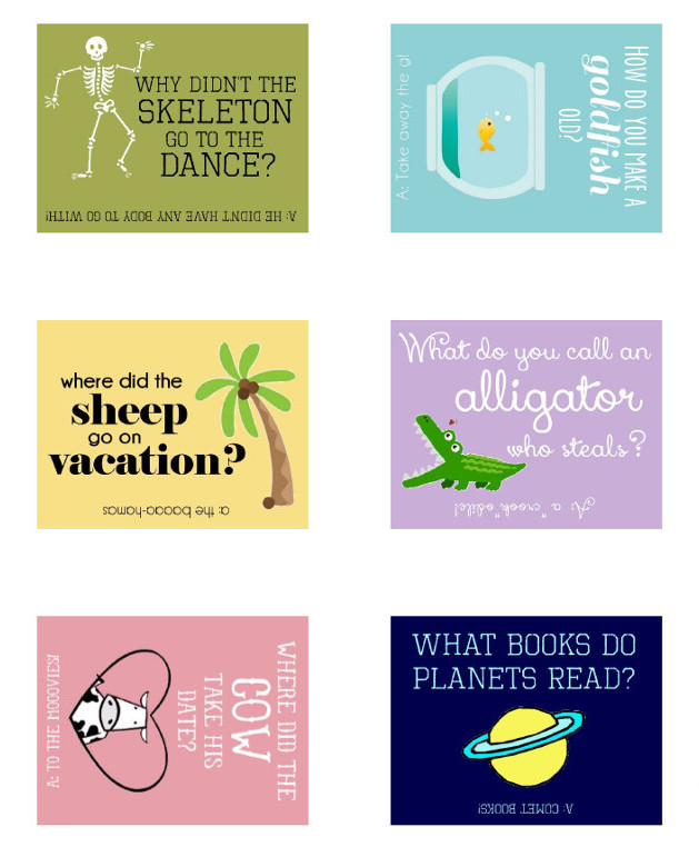 One thing I remember fondly about going to school as a kid are the notes and silly pictures my mom used to scribble on our napkins every day. I always looked forward to seeing those. My teenagers love a really good bad joke, so, in honor of my mom, I designed some little lunchbox jokes to make their first day of school lunches extra special. If you have younger kids they'll probably appreciate these all the more.